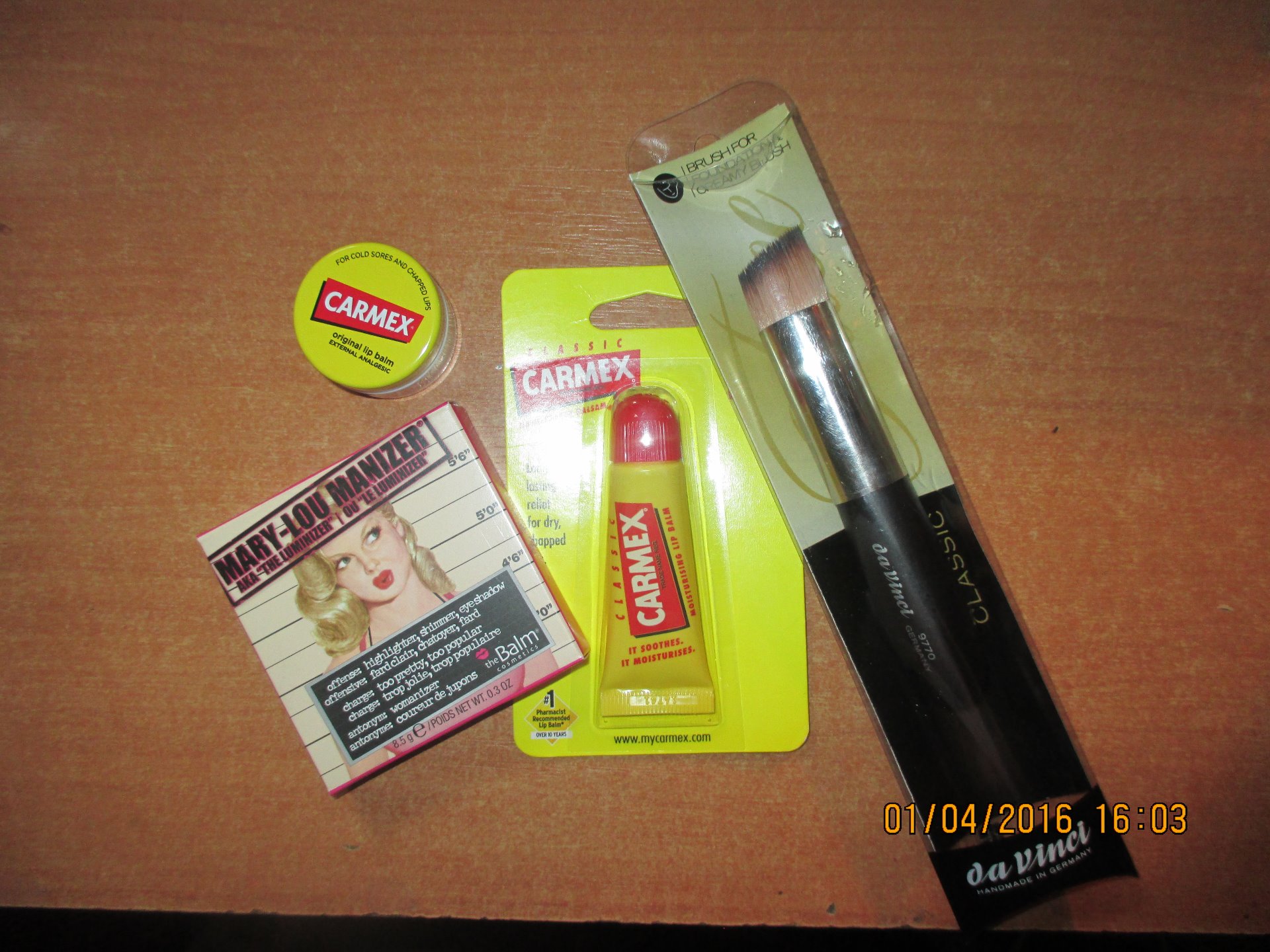 Poslední nákup byl v kameném obchodě Parfums.cz v pasáži Florentinum. V Parfums jsme si udělala asi největší radost. Koupila jsme si štětec na makeup Da Vinci za 543 Kč. Mary - Lou Manizer od TheBalm za 500 Kč a dva výrobky na rty od Carmex.