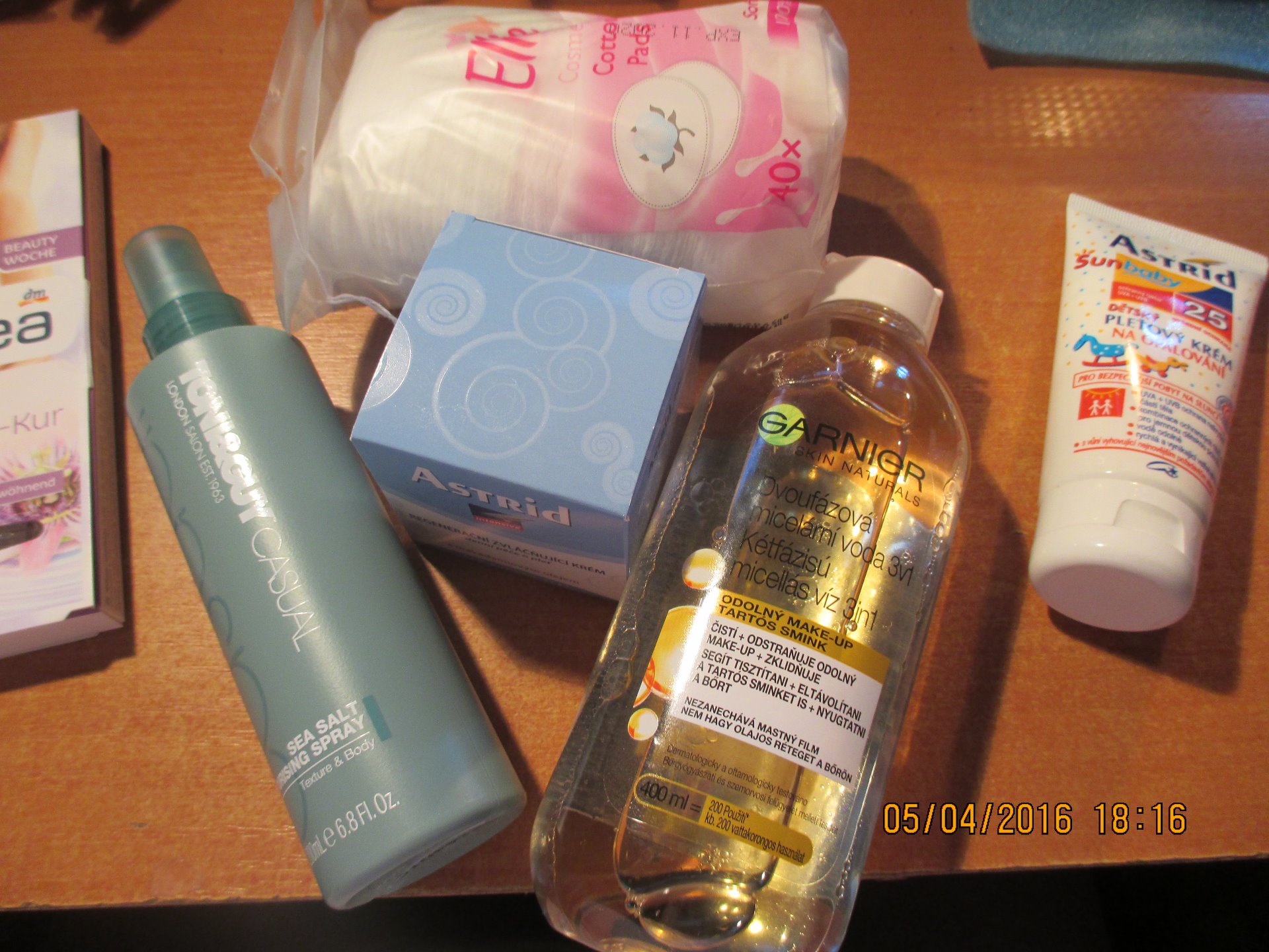 V průběhu týdne jsme ještě zavítala do TETY, kde jsem si do košíku nabrala nějaké novinky. Jednalo se hlavně o pečující kosmetiku. Objevila jsem dvoufázovou odličovací micelární vodu od Garnier. Pak jsem si do koše hodila opalovací krém Astrid pro děti SPF 25. Ve výprodeji mají stále krémy Astrid a kvůli starému obalu stojí pouhých 19 Kč tak jsem taky jeden krém přihodila. A na závěr jsem si koupila veliký slaný sprej na vlasy od TONY GUY.