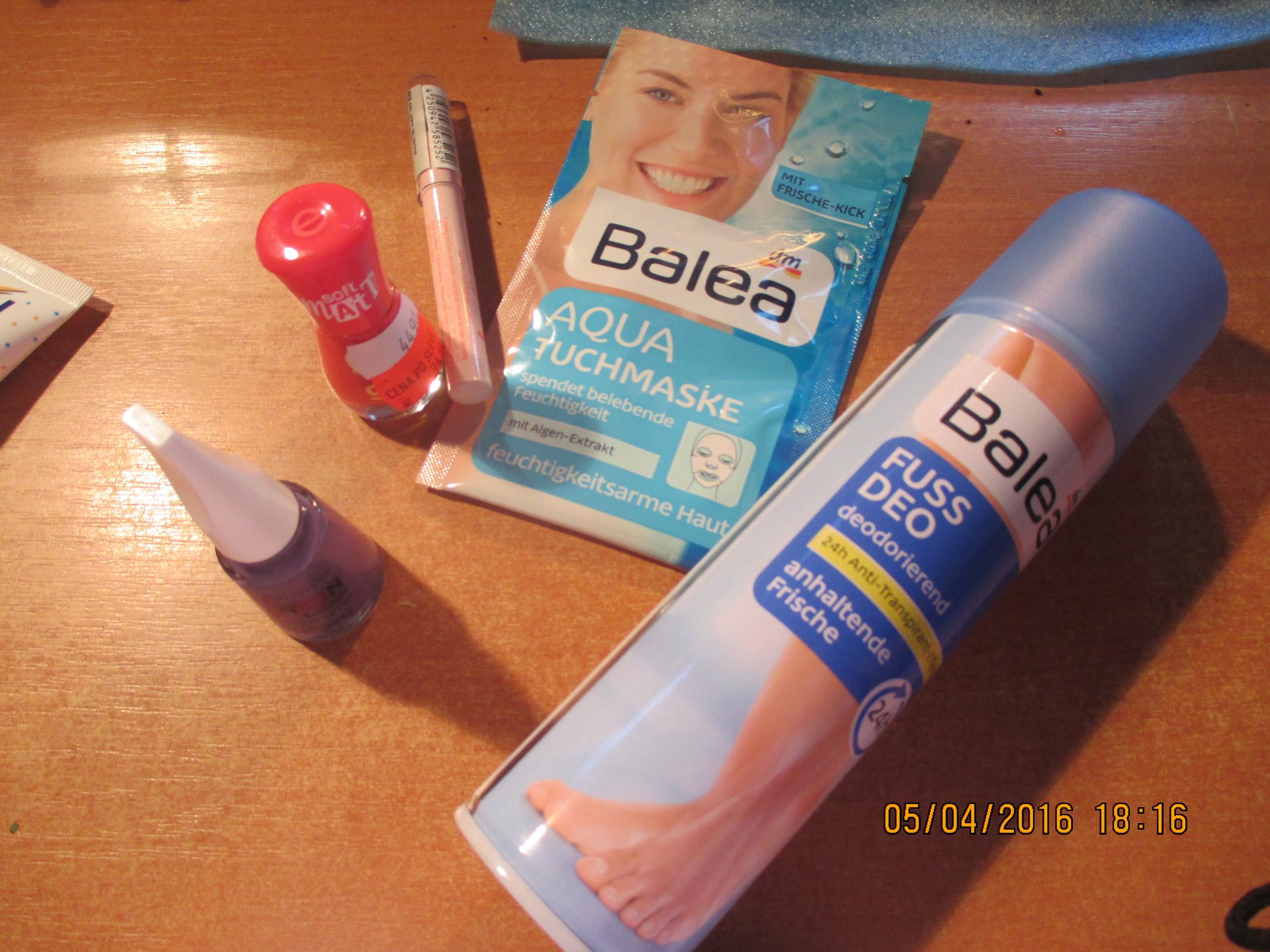Tento týden jsem dostala do schránky slevové kupony do DM a tak jsem nečekaně musela jít prozkoumat, co nového v DM mají. V DM jsme si pořídila 7 denní kůru na oživení a rozzáření pleti. Na každý den je jiná ampule plná daného výrobku. Pak jsem si koupila trojbarvený pudr Alvedre. Tento pude mne zatím mile překvapil. Ve slevě jsem našla od Essence rozjasňujíc tvářenku velice nude barvy a matný lak na nehty od Essence. V nové kolekci Essence jsme is vybrala rozjasňujííc tužku do vnitřní linky. No a nemohla jsem v regálu nechat masku Aqua Tuchmaske. Pak jsem si koupila ještě sprej na nohy. U poklady jsem do košíku přihodila krémový odličovač Nivea a jako dárek dostala malý krém Nivea.