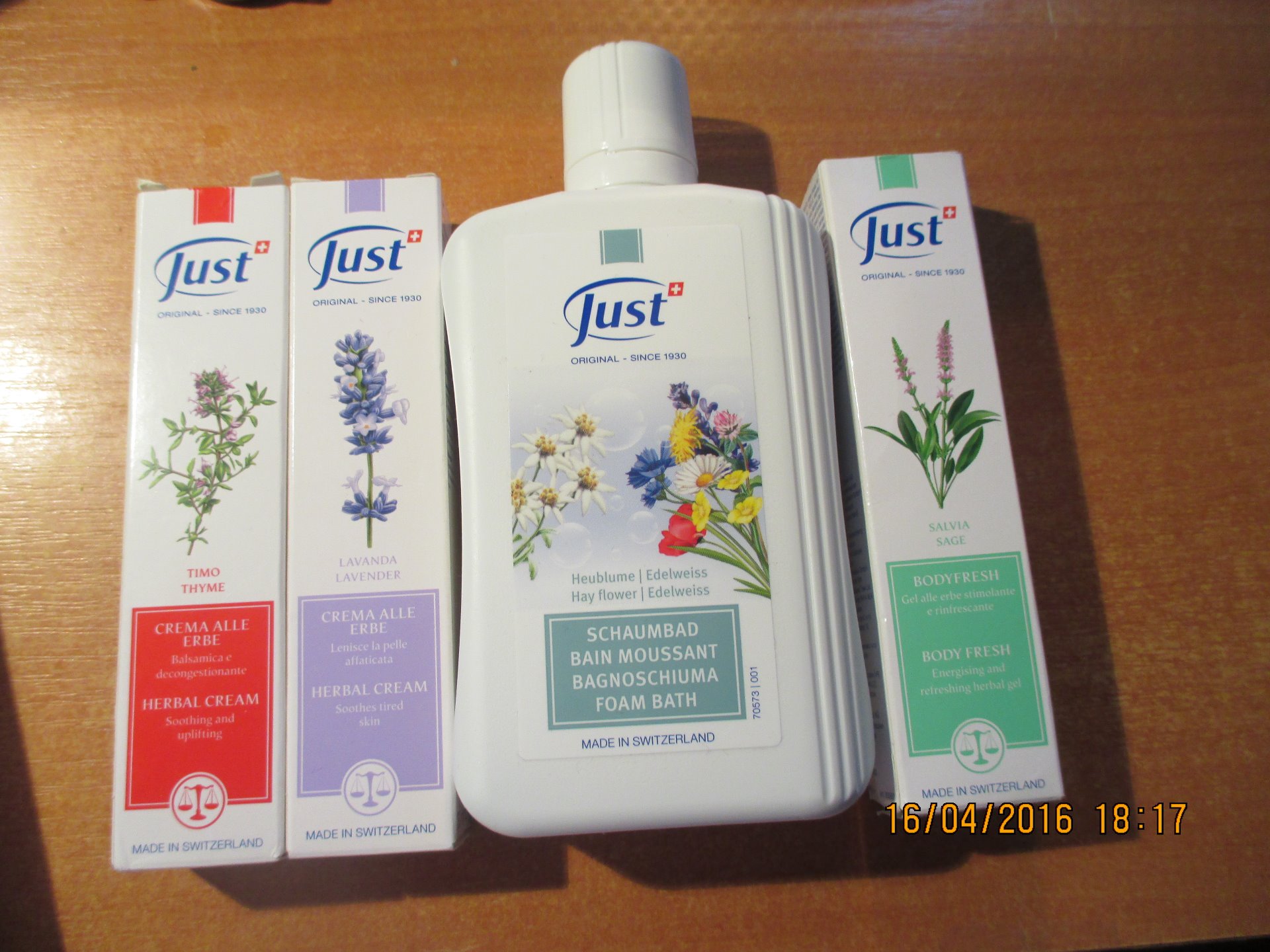 Od kamarádky odebírám výrobky Just a tento týden jsem si odnesla krém levandule, Body fresh gel, Tymiánový krém a Koupel z horských bylin.