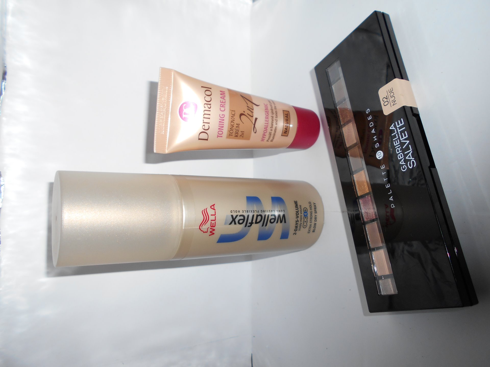 Tak jsem dneska navštívila Tetu a Dm. Nedalo mi to a nakoupila jsem si pěkné věcičky. Jako první začnu v Tetě. Takže v Tetě jsme si koupila pouze tři věci Tonig cream od Dermacolu, Wellaflex na objem vlasů a paletku od Gabriella Salvete v odstínu Nude 02.