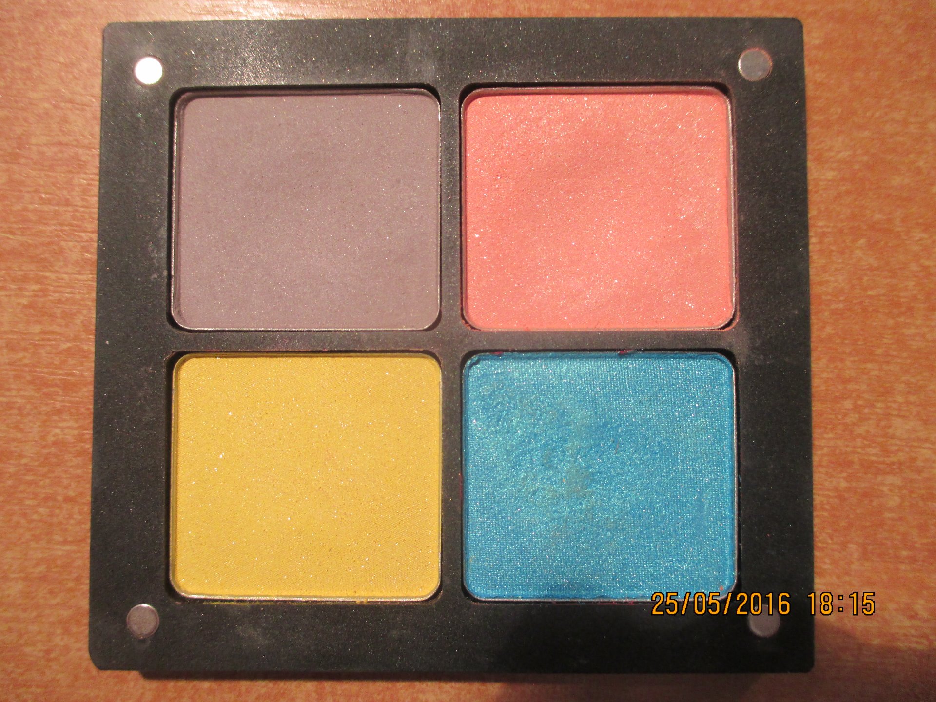 Teď k mojí paletce. Mám paletku na 4 stíny. Já jsem chtěla, aby byla, co nejvíce multifunkční, kde budou, jak odstíny velice "bláznivé", tak odstíny neutrální a přirozené. Myslím si, že si mi moje myšlenka docela vyplnila.