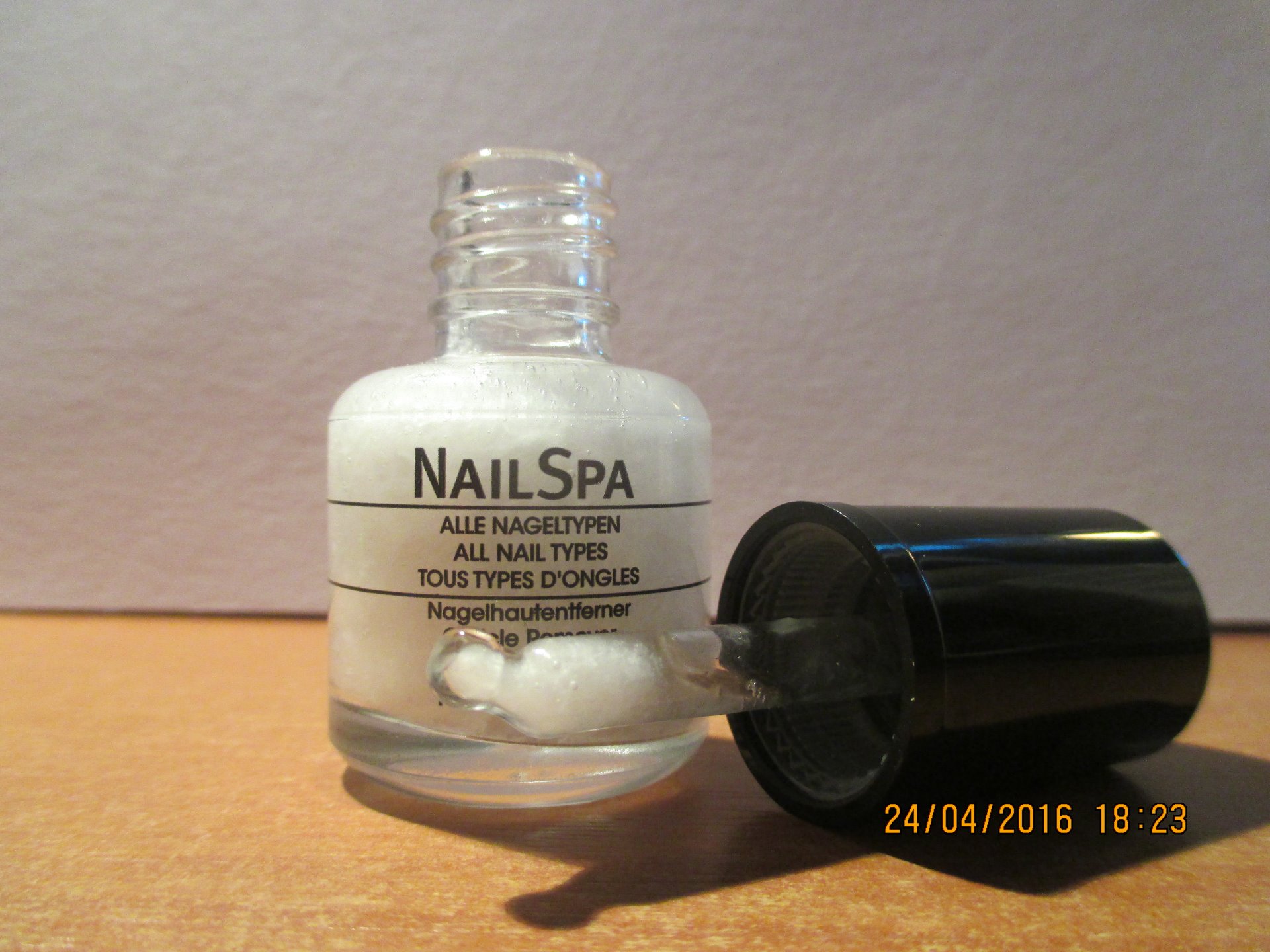 Jedná se o výrobek, který je určen na odstranění kůžičky kolem nehtů neinvazovní metodou. Jedná se o gelovitou tekutinu, která se nanese na nehtovou kůžičku a nechá se působit 1 minutu až 5 minut. Po uplynutí doby (pozor nikdy nenechte působit delší dobu) si vezmeme pomerančové dřívko/kovový nástroj na zatlačování kůžičky a kůžičku začneme stírat z nehtu. Nikdy nepoužívám sílu nebo násilí, můžeme si tak poškodit nehet. Dřívkem kůžičku odstraňujeme jedním směrem. Kůžička se stírá velice snadno, jako máslo. Po odstranění kůžičky nehet omyjte aby roztok dále nepůsobil. Určitě mohu tento roztok jen doporučit, opravdu je účinný. Cena výrobku je 360 Kč.